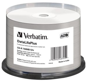 CD-R AZO Wide Inkjet Printable Disky Verbatim CD-R/RW využívají technologii MKM/Verbatim, která zajišťuje, že každá nahrávka bude v té nejvyšší kvalitě.