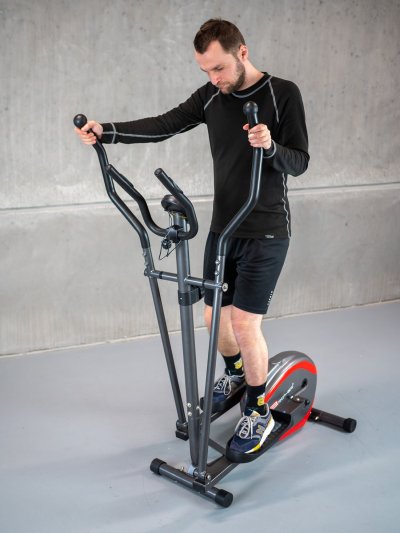 Magnetický eliptický trenažér Acra Brother BE540 je určený pro méně náročné uživatele s výškou do 187 cm a je vhodný pro použití v posilovně i v domácím prostředí. Umožňuje manuální volbu zátěže z 8 stupňů pomocí 6kg setrvačníku, tudíž si snadno přizpůsobíte obtížnost cvičení požadované úrovni. Zabudovaný počítač měří čas, ujetou vzdálenost, vynaloženou rychlost, spálené kalorie a také tepovou frekvenci, takže budete mít dostatek údajů pro důslednou analýzu vašeho sportovního výkonu i zdravotního stavu. Rovněž zde nechybí praktická funkce Scan, která obstará pravidelné zobrazení všech měřených údajů pro vyšší přehlednost během cvičení a posilování.