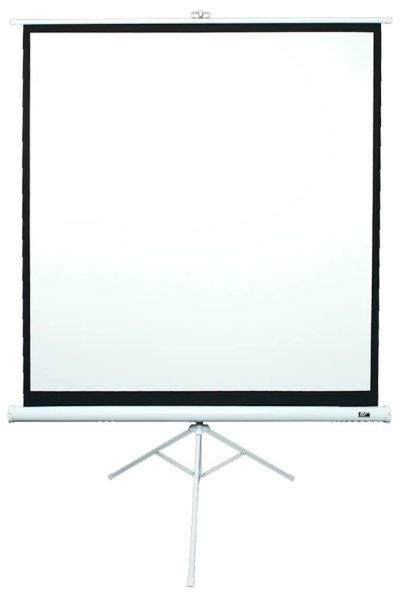 Manuální plátno typu trojnožka s úhlopříčkou 71" a bílou konstrukcí. Vhodné pro projektory se standardní projekční vzdáleností.