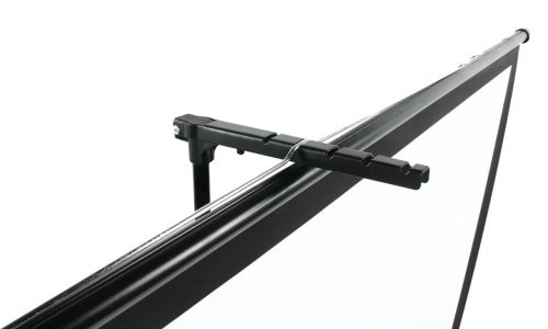 Manuální plátno typu trojnožka s úhlopříčkou 71" a černou konstrukcí. Vhodné pro projektory se standardní projekční vzdáleností.