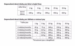 Doporučené denní krmné dávky pro štěňata a rostoucí psy
