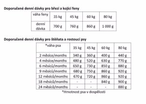 Doporučené denní krmné dávky pro březí a kojící feny
