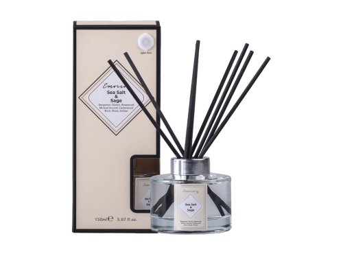 Difuzér 150 ml s vůní Sea Salt & Sage je elegantní vonný difuzér s kvalitními vonnými stébly, který přináší do vašeho domova příjemnou a harmonickou atmosféru.Bylinková vůně provoní místnost rovnoměrně a dlouhodobě. Lahvička s minimalistickým nebo keramickým designem slouží zároveň jako stylový dekorativní doplněk interiéru. Ideální pro relaxaci, večerní pohodu, meditaci nebo jako dekorativní prvek, který zútulní každý prostor. Skvělý dárek pro milovníky kvalitních a dlouhotrvajících vůní.