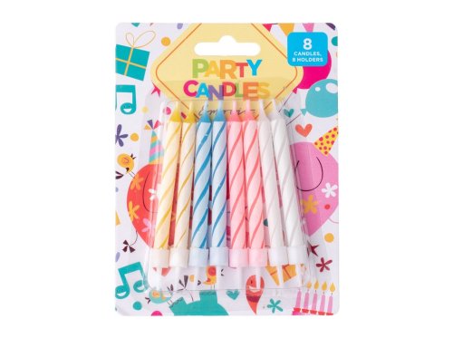 Dortové svíčky Emocio v sadě 8 kusů o délce 78 mm doplněné o 8 spirálových svícnů pro snadné a bezpečné uchycení do dortu. Barevný mix svíček rozzáří každý slavnostní okamžik a je ideální pro narozeninové oslavy i jiné párty. Svíčky mají elegantní spirálový design a díky svícnům pevně stojí na místě. Zboží je dodáváno v mixu. Doručované zboží je vybíráno náhodně a nelze vybrat konkrétní provedení.