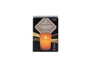 Moderní LED svíčka v krémové barvě s realistickým tančícím plamenem, který simuluje skutečný oheň, ideální pro bezpečnou atmosféru bez zápachu. Její rozměry jsou 75x100 mm.