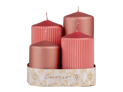 Emocio Sada 4ks Válec hladký + rýhovaný 65mm, Metal mat vínový+bronzový mix, svíčky