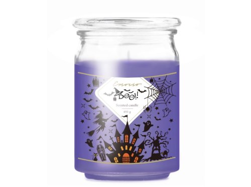 Emocio Sklo 93x142 mm se skleněným víčkem Boo fialová vonná svíčka