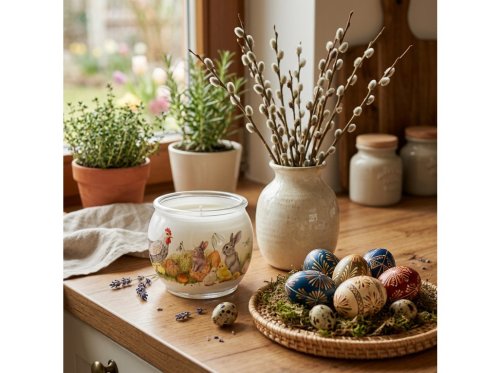 Emocio Sklo Dekor 80x72 mm Easter garden, vonná svíčka