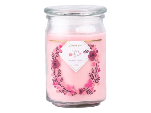 Emocio Sklo se skleněným víčkem For You, růžová vonná svíčka 93x142 mm