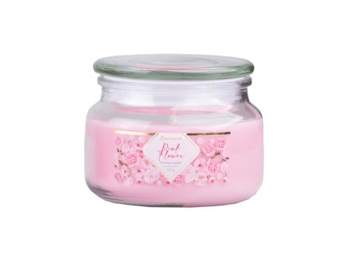 Romantická skleněná svíčka v růžové barvě s víčkem, která přinese příjemnou atmosféru.