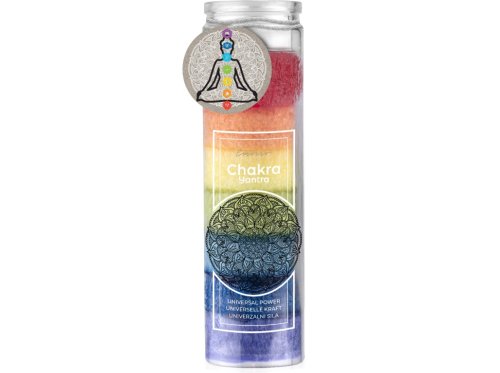 Emocio svíčka ve skle stearin Chakra 7 vrstev v barevném provedení je originální svíčka, která nabízí nejen nádherný vzhled, ale i příjemnou atmosféru díky vrstvené stearinové struktuře. Je skvělá pro meditace a relaxaci.