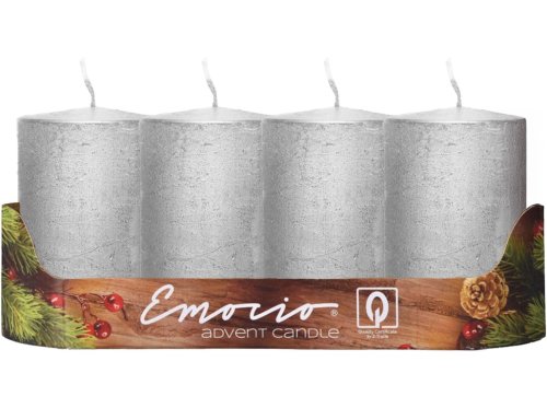 Emocio Válec 4ks 50x100mm Rustik Metal stříbrné svíčky