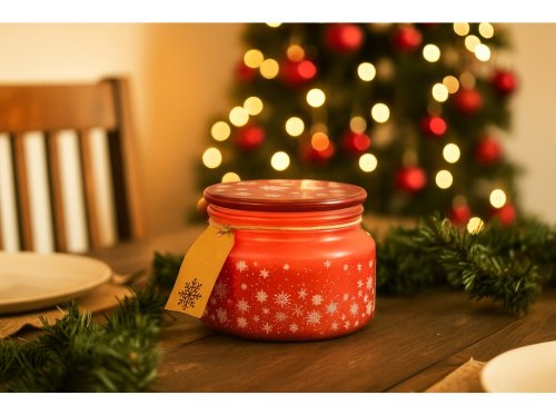 Vneste do svého domova kouzlo zimní pohody s vonnou svíčkou Emocio Magic Snowing v elegantní červeno-bílé variantě. Svíčka je uložena v kvalitním skle o rozměrech 100 × 79 mm a doplněna skleněným víčkem, které chrání vůni a dodává svíčce stylový, luxusní vzhled.