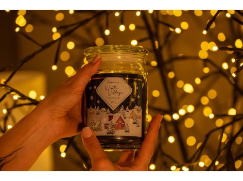 Připravte svůj domov na hřejivou zimní atmosféru s vonnou svíčkou Emocio Winter Village. Elegantní svíčka ve skle se skleněným víčkem udržuje vůni svěží a zároveň působí dekorativně. Perfektní doplněk na stůl, polici nebo jako voňavý dárek pro rodinu a přátele.