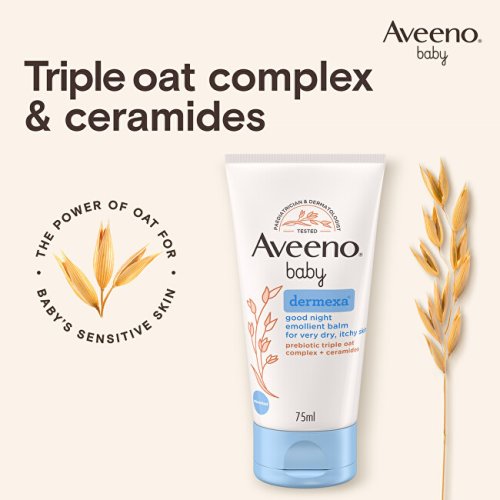 Emolienční balzám na dobrou noc byl vyvinut speciálně pro potřeby citlivé a atopické dětské pokožky. Díky Trojitému ovesnému komplexu a ceramidům poskytuje intenzivní hydrataci, zklidnění svědění a podporu kožní bariéry po celou noc. Klinické testy prokázaly, že zmírňuje diskomfort již od první aplikace a viditelně obnovuje kožní bariéru do jednoho týdne. Jeho složení s prebiotickým ovesným výtažkem přispívá k rovnováze kožního mikrobiomu a chrání pokožku před dalším podrážděním. Díky více než 40 letům výzkumu ovsa přináší Aveeno® účinnou a šetrnou péči pro klidnější spánek vašich nejmenších.