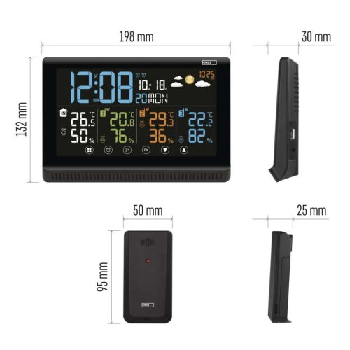 Objevte spolehlivého pomocníka pro sledování počasí s touto pokročilou meteorologickou stanicí. Nabízí přesné měření vnitřních i venkovních podmínek s velkým přehledným barevným podsvíceným displejem a možností připojení až tří bezdrátových čidel. Díky DCF řízení budete mít vždy přesný čas, a USB napájecí výstup rozšiřuje využitelnost zařízení.