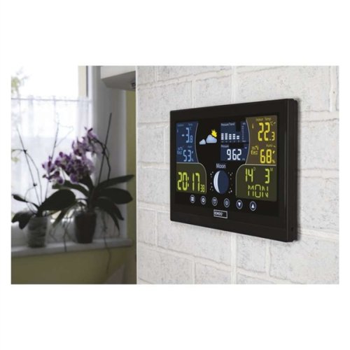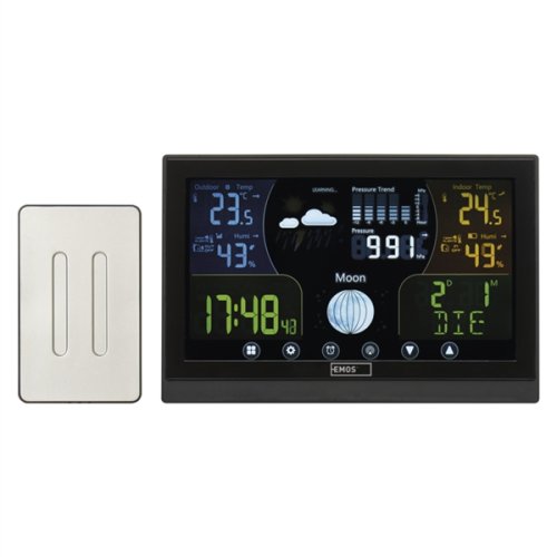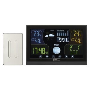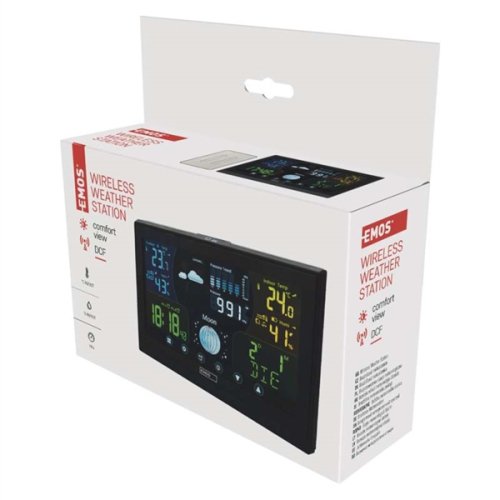 Nejdůležitější parametry síťový adaptér ano, 5 V DC/300 mA (součástí balení) možné další čidlo až 3 čidla (E06018) dosah čidla až 100 m barometr ano velikost displeje 168 × 93 mm projekce ne Ostatní parametry možnost pověšení na zeď ano drátová sonda k čidlu ne venkovní teplota -50 °C až +70 °C, rozlišení 0,1 °C venkovní vlhkost 1 % až 99 % RV, rozlišení 1 % předpověď počasí ano hodiny řízené DCF signálem min. a max. teplota ano trvalé podsvícení ano fáze měsíce ano datum ano trend tlaku ano napájení stanice 3× 1,5 V AAA (nejsou součástí balení) provedení bezdrátové kalendář ano vnitřní teplota -10 °C až +50 °C, rozlišení 0,1 °C srážkoměr ne trend teploty ano LED podsvícení displeje ano korekce nadmořské výšky ano barevný displej (black mask) podsvícený ano 12/24 formát času ano napájení čidla 2× 1,5 V AAA (nejsou součástí balení) budík ano, 2× vnitřní vlhkost 1 % až 99 % RV, rozlišení 1 % anemometr ne teplotní výstraha ano časová pásma ano produkt meteostanice elektronické plošné podsvícení ano opakované buzení ano možnost nastavení jednotky teploty °C/°F přenosová frekvence 433 MHz rozměr čidla 15 × 62 × 100 mm rozměr hlavní jednotky 17 × 192 × 127 mm prodejní obal 1 ks, krabička