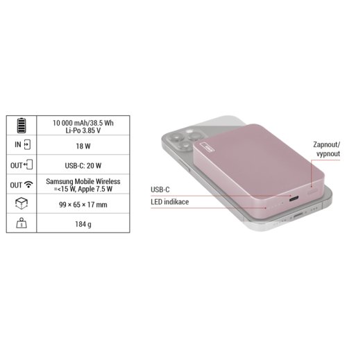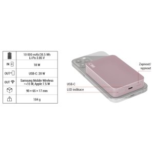 Značka EMOS Objednací číslo B0551S Produktové číslo 1613055102 EAN 8592920138281 auto ON/OFF ano kapacita akumulátoru 10 000 mAh/38,5 Wh typ akumulátoru Li-Po 3,85 V max. výkon drátového nabíjení 20 W doba nabíjení 2 hodiny passthrough ano barva lososová LED indikátor nabíjení ano LED indikátor stavu baterie ano přibalený kabel USB-C/USB-C rychlé nabíjení PD 20 W hmotnost 184 g materiál hliník max. vstupní výkon 18 W ochrana proti podbití ano ochrana proti přebití ano ochrana proti přetížení ano ochrana proti zkratu ano provozní teplota 0 °C až +40 °C typ vstupního rozhraní 1× USB-C typ výstupního rozhraní 1× USB-C záruční doba 2 roky rozměr 99 × 65 × 17 mm prodejní obal 1 ks, papírová krabička