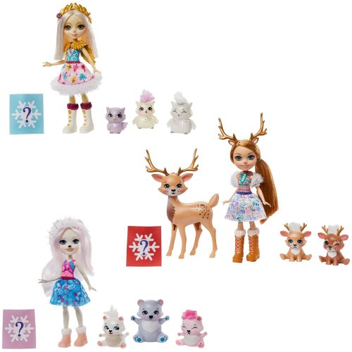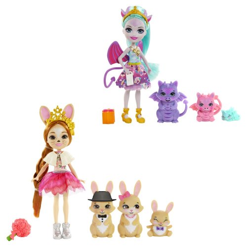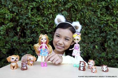 Seznamte se s Enchantimals™, partou roztomilých bytůstek, které mají zvláštní pouto se svými mazlíčky. Tyto sety Enchantimals™ Rodinka obsahují panenku (15 cm) a 3-4 mazlíčky. Malé děti si zamilují hraní na zvláštní pouto, které tito nejlepší přátelé sdílejí. Figurky zvířátek jsou každá výjimečná svým jedinečným vzhledem. Nasbírejte je všechny a rozšiřte si svůj kouzelný svět Enchantimals™! Prodávají se samostatně dle aktuální nabídky. Obsahuje panenku v módním oblečení s doplňky a 3-4 figurky zvířat. Barvy a vzhled výrobku se mohou lišit.