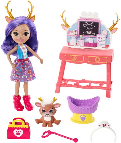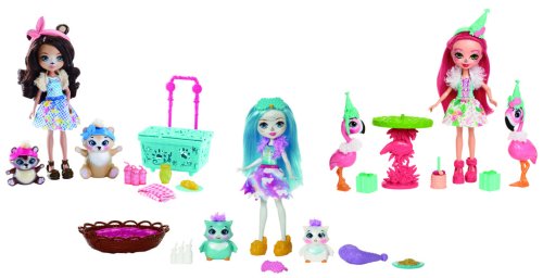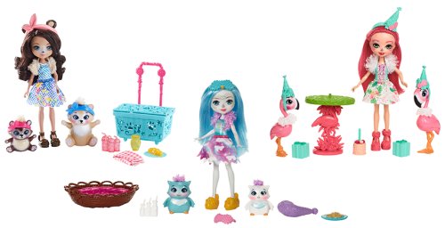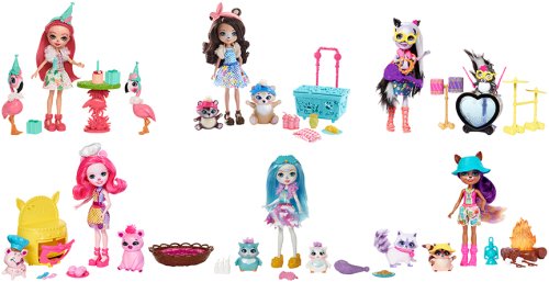 Tématické balení Enchantimals nabízí 15-ti cm panenku, napůl holčičku a napůl zvířátko, s oblečky v krásných zářivých barvách a doplňky sladěnými se svým roztomilým zvířátkem. Balení obsahuje panenku, dvě zvířátka různých velikostí a tématické doplňky. Vyraž s Bren Medvědovou na piknik, oslav narozeniny s Fanci Plameňákovou nebo si užij pyžamovou párty s Ohanou Sovičkovou.