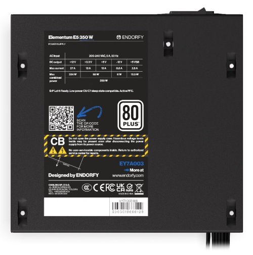 Napájecí zdroj ATX Barva: černá Rozměry (V × Š × D): 87 × 140 × 150 mm Trvalý výkon: 350 W Účinnost: 80 PLUS® Kabeláž: s černým pláštěm Ventilátor: 120 mm