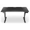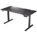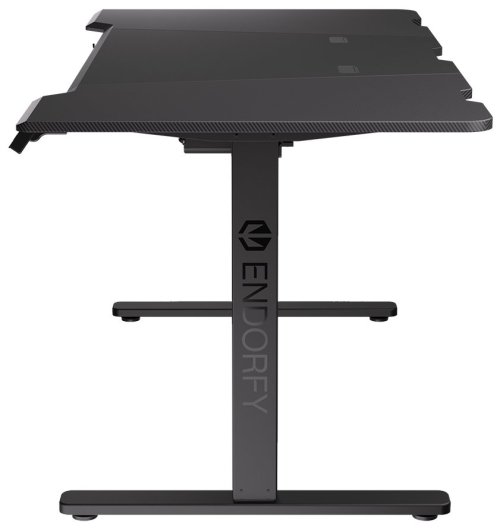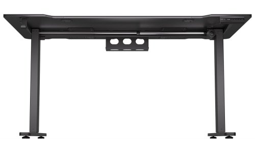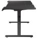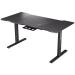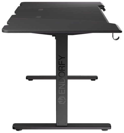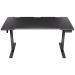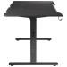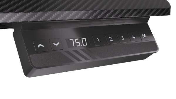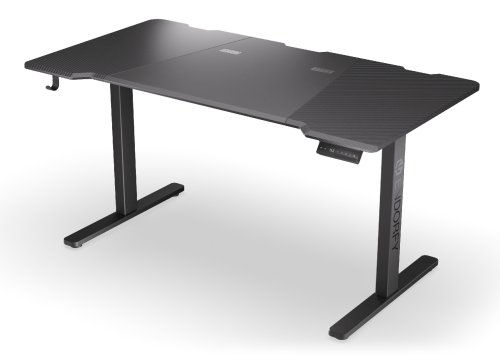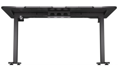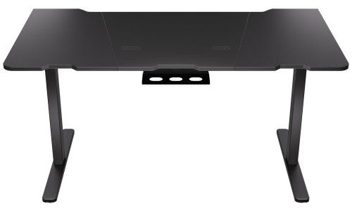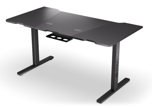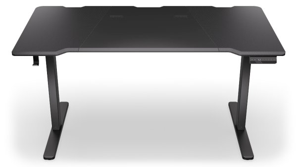 Herní stůl o délce 150 cm a šířce 78 cm nabízí dostatek prostoru pro myš, klávesnici a další příslušenství. Výšku lze plynule nastavit v rozsahu 73 až 120 cm pouhým stisknutím tlačítka na ovládacím panelu, který navíc umožňuje uložit až čtyři nastavení výšky. Na spodní straně desky je umístěn systém pro správu kabelů. Maximální stabilitu zajišťuje robustní ocelová konstrukce s nosností až 80 kg. Povrchová úprava desky stolu ve stylu uhlíkových vláken nejen dobře vypadá, ale je také odolná proti poškrábání. V neposlední řadě zajisté potěší kovová polička pro napájecí lištu na zadní straně a háček pro zavěšení sluchátek.