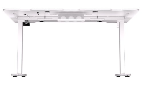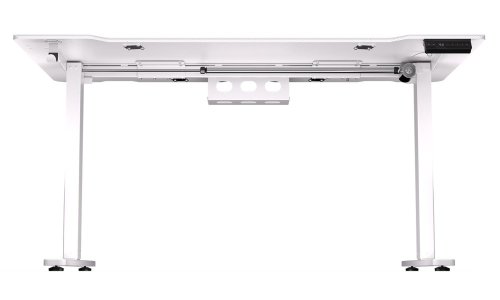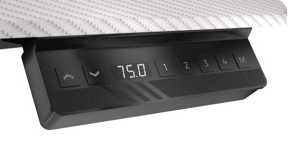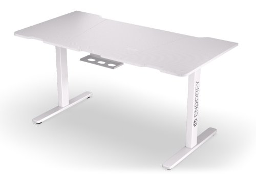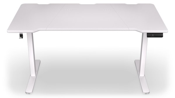 Herní stůl o délce 150 cm a šířce 78 cm nabízí dostatek prostoru pro myš, klávesnici a další příslušenství. Výšku lze plynule nastavit v rozsahu 73 až 120 cm pouhým stisknutím tlačítka na ovládacím panelu, který navíc umožňuje uložit až čtyři nastavení výšky. Na spodní straně desky je umístěn systém pro správu kabelů. Maximální stabilitu zajišťuje robustní ocelová konstrukce s nosností až 80 kg. Povrchová úprava desky stolu ve stylu uhlíkových vláken nejen dobře vypadá, ale je také odolná proti poškrábání. V neposlední řadě zajisté potěší kovová polička pro napájecí lištu na zadní straně a háček pro zavěšení sluchátek.