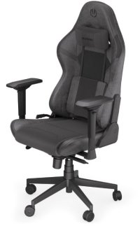 Herní židle s lehkou konstrukcí a ergonomickým designem. Židle je potažena látkovou tkaninou a syntetickou kůží. Kvalitní polstrování zad a sedáku poskytuje dobrou oporu a pohodlí, které potřebujete při dlouhém sezení u počítače. Navíc disponuje polštářky z paměťové pěny. Židle nabízí úhel sklonu až 150°, možnost houpání a výškově nastavitelné opěrky rukou s rotací či horizontálním posunem. Nosnost je až 120 kg.