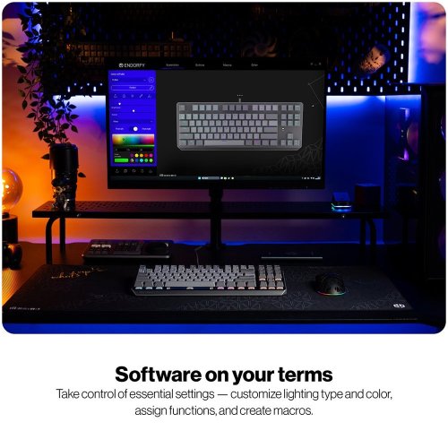 Spínače Endorfy Red jsou speciálně navrženy pro hladký stisk bez zadrhávání. RGB podsvícení je stylové na pohled a díky softwaru umožňuje také pokročilé nastavení. Vytvoříte si vlastní světelný „podpis“ a rozzáříte svůj herní kout. Klávesnice Endorfy Thock V2 TKL vám dá přesně to, co potřebujete pro dominanci na herní scéně.