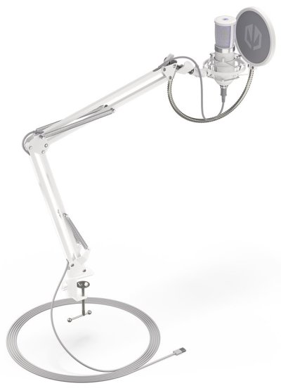 Dlouhé polohovatelné rameno šetří místo na vašem stole a umožní vám mikrofon rychle a jednoduše nastavit do požadované polohy. Konstrukce umožňuje uchycení na stranu desky stolu, čímž šetří prostor pro další důležité věci. Díky systému Plug & Play je během okamžiku připraven a vy můžete začít mluvit a využívat mikrofon naplno. Elegantní design Onyx White navíc dá vašemu domácímu studiu punc exklusivity.