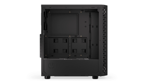 Skříň formátu Middle Tower nabízí dvě 2,5" pozice pro SSD disky a dvě 3,5" pozice pro pevné disky. Na horní části se nachází dva USB 3.0 porty, sluchátkový výstup a audio vstup pro mikrofon. Vybavena je jedním 120 mm ventilátorem, který spolu s perforovaným čelním panelem zajišťuje dostatečné proudění vzduchu. Důmyslné řešení umožňuje pohodlné umístění až 360 mm dlouhého výměníku vodního chlazení na přední straně. Ve skříni je dostatek prostoru pro chladič CPU do výšky až 161 mm a grafickou kartu o délce až 350 mm. Dodávána je bez zdroje. Součástí je také sada prachových filtrů.