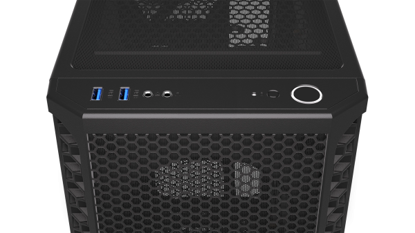 Konektory na horním panelu: 2x USB 3.0, 1x sluchátkový výstup, 1x vstup pro mikrofon