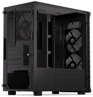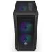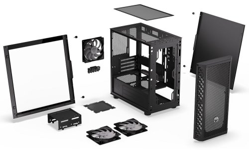 Moderní vzhled dotváří prosklená boční stěna z tvrzeného skla pro prezentaci sestavy a ARGB podsvícení s přiloženým kontrolérem. Skříň nabízí prostor pro grafické karty do délky 345 mm, CPU chladiče do výšky 159 mm a vodní chlazení s až 240mm radiátory. Magnetické prachové filtry a přední mesh panel lze snadno vyjmout a vyčistit.