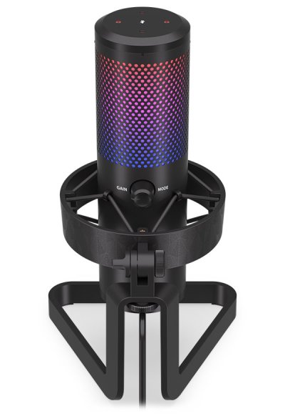 Kvalitní mikrofon s kardioidní charakteristikou a stojánkem je ideální pro streamování, natáčení vlogů, podcastů či hlasovou komunikaci. Vybaven je RGB podsvícením, dotykovým tlačítkem pro ztlumení mikrofonu a 3,5 mm jackem pro připojení sluchátek. Součástí balení je 2,5 m dlouhý připojovací USB-C kabel.