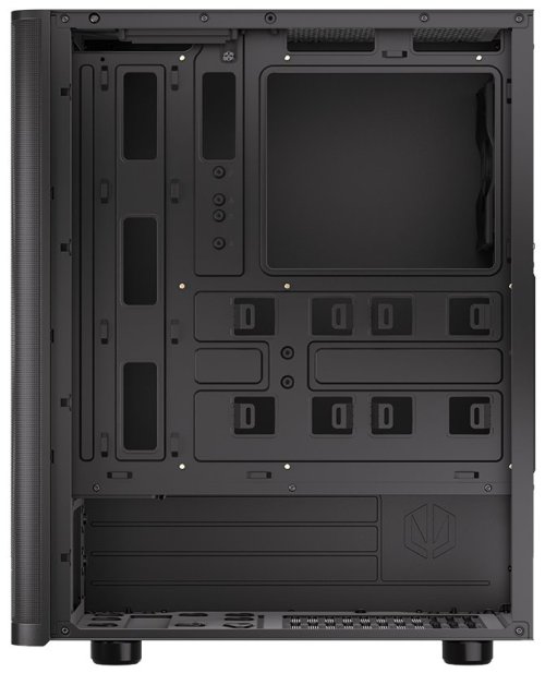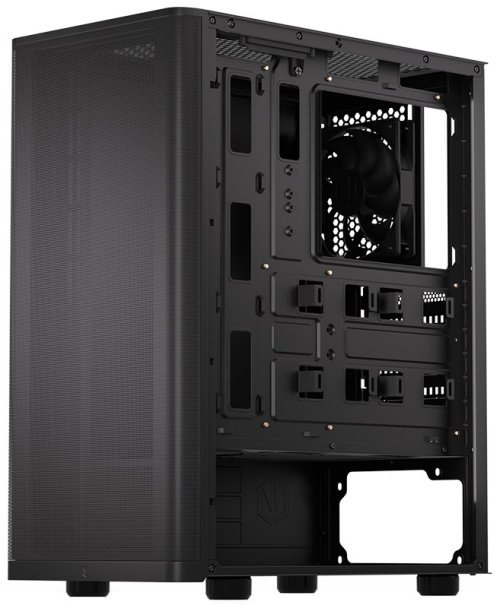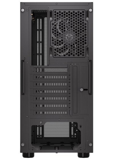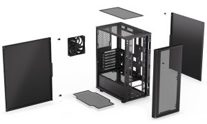 Skříň formátu Middle Tower nabízí dvě 2,5" pozice pro SSD disky a jednu 3,5" pozici pro pevný disk. Na horní části se nachází dva USB 3.0 porty, sluchátkový výstup a audio vstup pro mikrofon. Vybavena je jedním 120 mm ventilátorem, který spolu s perforovaným čelním panelem zajišťuje dostatečné proudění vzduchu. Důmyslné řešení umožňuje pohodlné umístění až 360 mm dlouhého výměníku vodního chlazení na přední straně. Ve skříni je dostatek prostoru pro chladič CPU do výšky až 161 mm a grafickou kartu o délce až 315 mm. Dodávána je bez zdroje. Součástí je také sada prachových filtrů.