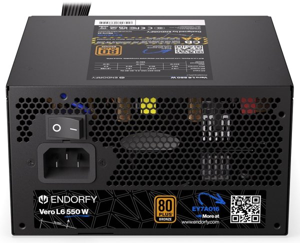 Endorfy Vero L6 550 W *Kompatibilní se standardem ATX 3.1 *Napájecí kabel 12V-2×6 (300 W) *Certifikace Cybenetics Silver *Certifikace 80 PLUS® Bronze *Ventilátor Stratus 120 mm *Vysoce kvalitní kondenzátory