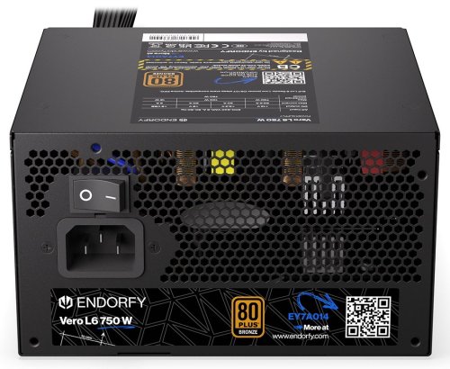 ENDORFY Vero L6 750 W *Kompatibilní se standardem ATX 3.1 *Napájecí kabel 12V-2×6 (600 W) *Certifikace Cybenetics Silver *Certifikace 80 PLUS® Bronze *Ventilátor Stratus 120 mm *Vysoce kvalitní kondenzátory