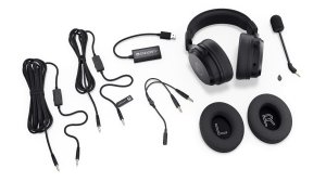 Součástí balení jsou náhradní textilní náušníky, dva kabely s konektory 3,5 mm jack (120 cm a 270 cm), krytka mikrofonního vstupu a redukce z combo jacku na dva samostatné výstupy pro mikrofon a sluchátka.