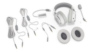 Součástí balení jsou náhradní textilní náušníky, dva kabely s konektory 3,5 mm jack (120 cm a 270 cm), krytka mikrofonního vstupu a redukce z combo jacku na dva samostatné výstupy pro mikrofon a sluchátka.