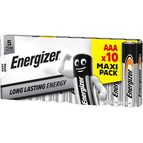 Energizer Everyday Family Pack AAA (10pack) je praktické balení spolehlivých alkalických baterií určených pro každodenní použití v domácích zařízeních. Tyto baterie poskytují stabilní výkon a dlouhou životnost, což je ideální pro dálkové ovladače, hračky, bezdrátové myši, svítilny a další drobnou elektroniku. Alkalická technologie minimalizuje samovolné vybíjení a zajišťuje konzistentní dodávku energie, což umožňuje dlouhodobé skladování bez ztráty kapacity. Baterie jsou navrženy pro spolehlivý provoz i při běžném každodenním používání.