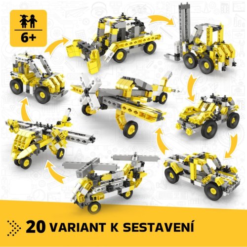 Stavebnice podporuje tvořivost a manuální zručnost dětí Umožňuje snadno a rychle přetvářet jeden model na druhý Dle přiloženého návodu a mobilní aplikace krok po kroku snadno vytvoříte 20 různých modelů Aplikace Engino kidCAD zobrazí modely ve 3D, které si můžete libovolně otáčet, prohlížet a upravovat Vyrobeno na Kypru EU