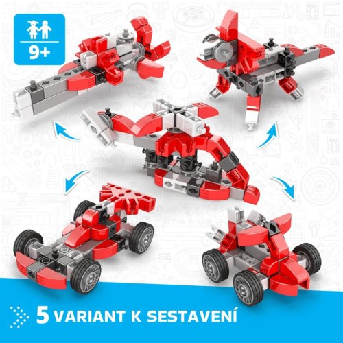 Stavebnice Engino Inventor Formule je součástí ucelené řady určené začínajícím i pokročilým stavitelům. Dle přiloženého návodu a mobilní aplikace krok po kroku snadno vytvoříte 5 různých modelů od dopravních prostředků po zvířátka. Interaktivní aplikace Engino kidCAD® zobrazí modely ve 3D, které si můžete libovolně otáčet, prohlížet a upravovat. Kompatibilní s ostatními druhy stavebnic Engino. Vhodné od 9 let, vyrobeno na Kypru EU.