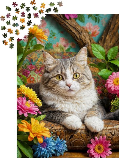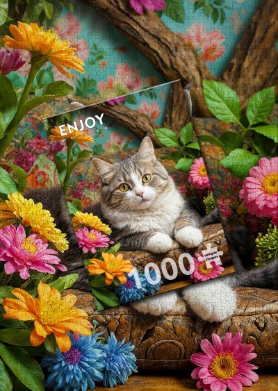 ENJOY Puzzle Kočka v květinách 1000 dílků