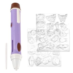 Sada obsahuje samotné čokoládové pero, kreslicí hrot pro přesné linie a dvě průhledné formičky s celkem 50 různými motivy, které usnadní tvorbu zábavných postaviček jako jsou zvířátka, srdíčka, květiny nebo různé dekorace. Díky nim mohou děti snadno vytvořit originální ozdoby na sušenky, muffiny, ovoce nebo jiné sladkosti. Čokoláda ve formě peciček není součástí balení, což umožňuje použít čokoládu podle vlastního výběru.