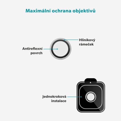 Ochranné sklo na objektiv Camera glass iPhone Air White Typ: Full cover Určení: Na objektiv Pro značku: Apple Barva: Bílá Rozměry: 0.33 cm Hmotnost: 0.5 g
