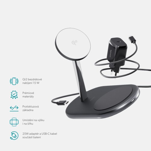 Bezdrátová nabíječka Epico Qi2 2in1 Mag+ nabíjecí stojánek černá
