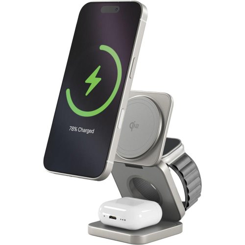 Bezdrátová nabíječka Epico Qi2 3in1 Mag+ nabíječka titanová