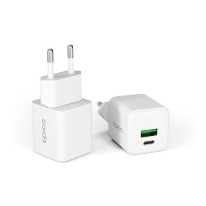 Nabíječka do sítě - s podporou rychlého nabíjení, celkový výkon 20 W (1× USB-C až 20 W, 1× USB-A až 18 W), technologie Power Delivery, technologie GaN.