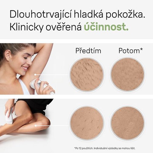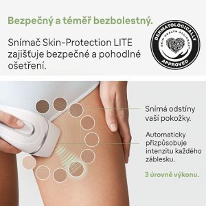 Hladká pokožka jako ze salonu až na 1 rok s IPL epilátorem Braun. Viditelné výsledky již po 2 použitích. Výkon se přizpůsobí odstínu pokožky díky inteligentnímu snímači Skin Pro (SensoAdapt™). Přístroj pracuje s až 100 záblesky za minutu, čímž zajišťuje rychlou a rovnoměrnou epilaci s méně vynechanými místy. Jemný režim snižuje intenzitu světla pro bezpečné použití v citlivých oblastech, jako je obličej, podpaží a oblast bikin. Více nástavců umožňuje kompletní péči od hlavy až k patě.