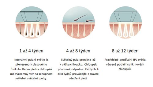 koncentrovaný zdroj světla, vysoký stupeň energie, maximální ochrana proti popálení pokožky, velmi snadné odstranění chloupků.